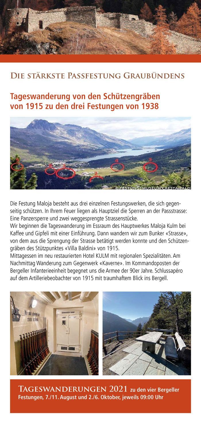MALOJA - die stärkste Passfestung Graubündens. Tageswanderung von den Schützengräben von 1915 zu den drei Festungen von 1938.